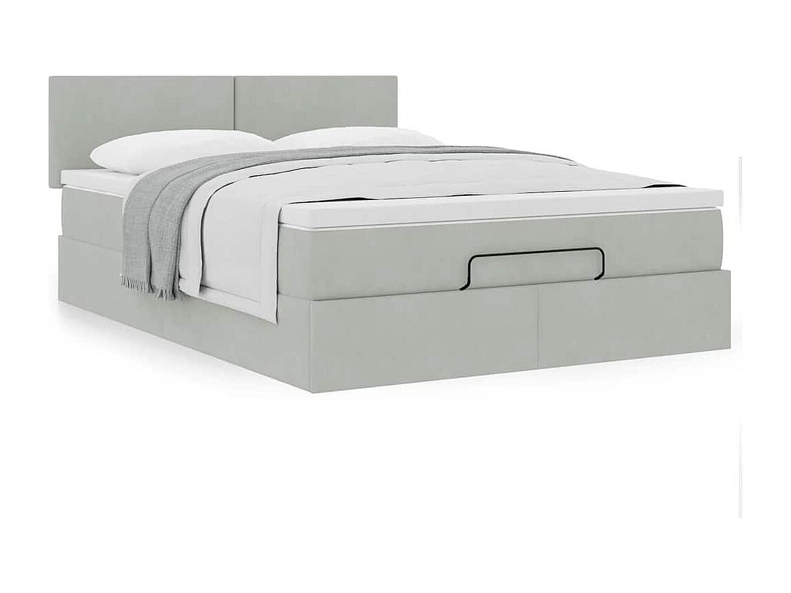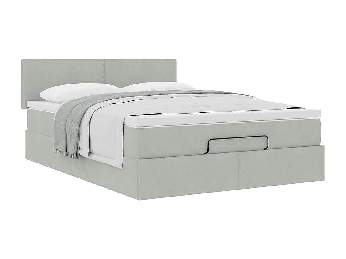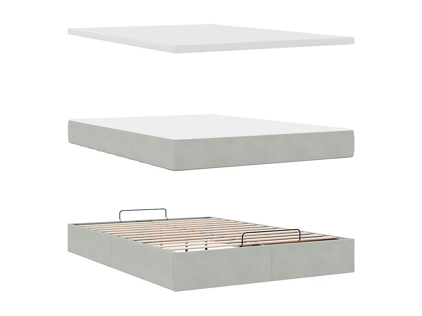 Estructura cama otomana colchón terciopelo gris claro 140x190cm