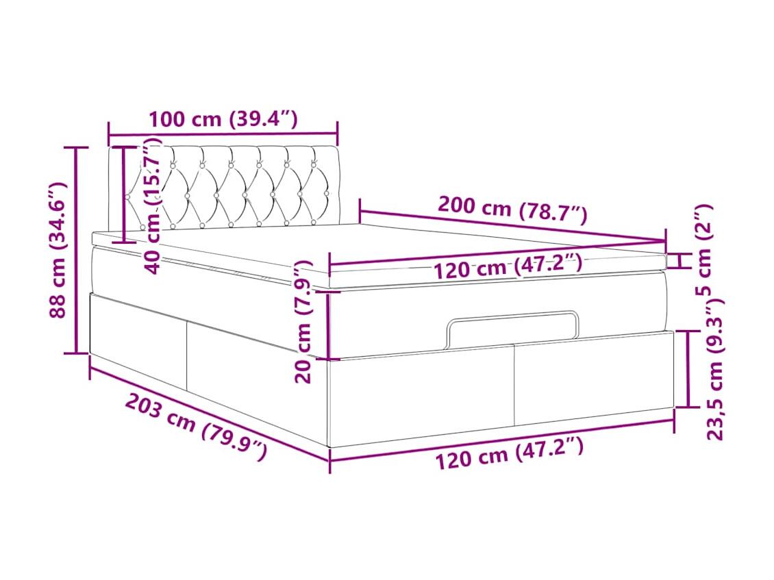 Estructura cama otomana colchón tela gris oscuro 120x200cm