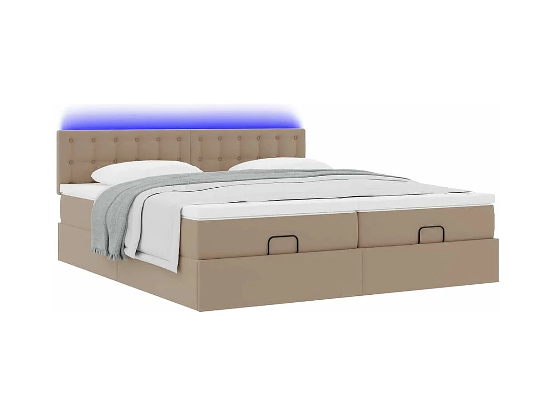Cama matrimonial con somier acolchada 180x190 cuero sintético capuchino Agueda