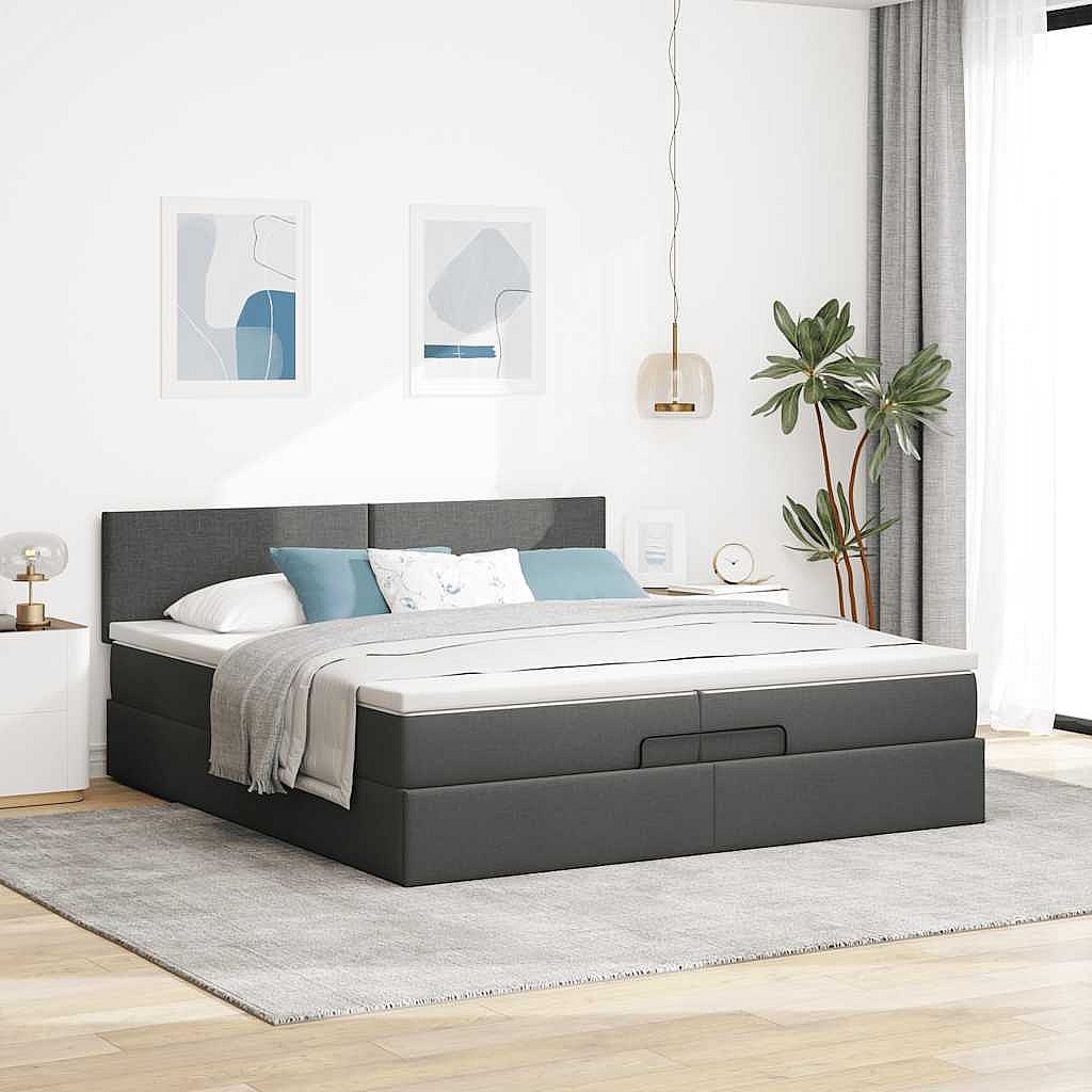 Estructura cama otomana colchones tela gris oscuro 200x200cm