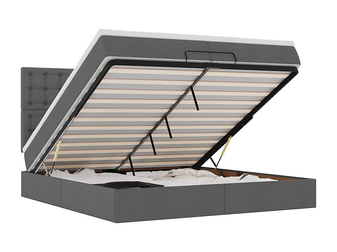 Estructura cama otomana colchones tela gris oscuro 200x200cm
