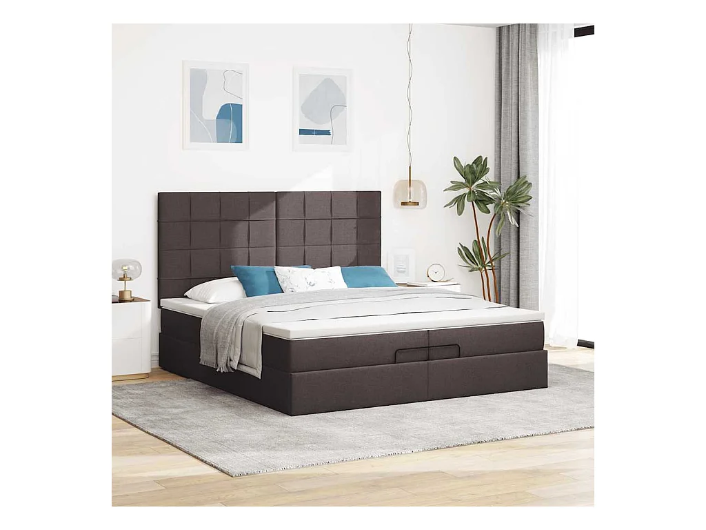 Estructura cama otomana colchones tela marrón oscuro 200x200cm