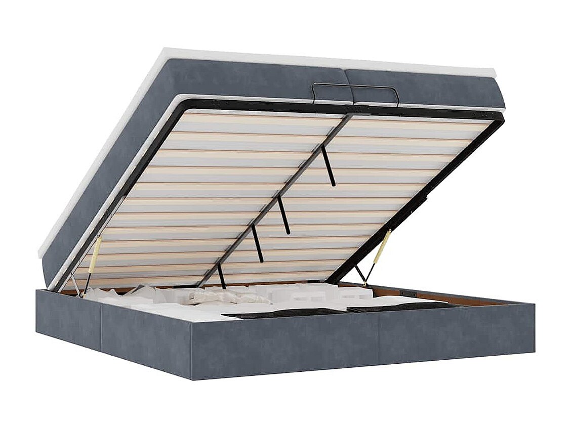 Estructura cama otomana colchones terciopelo gris oscuro
