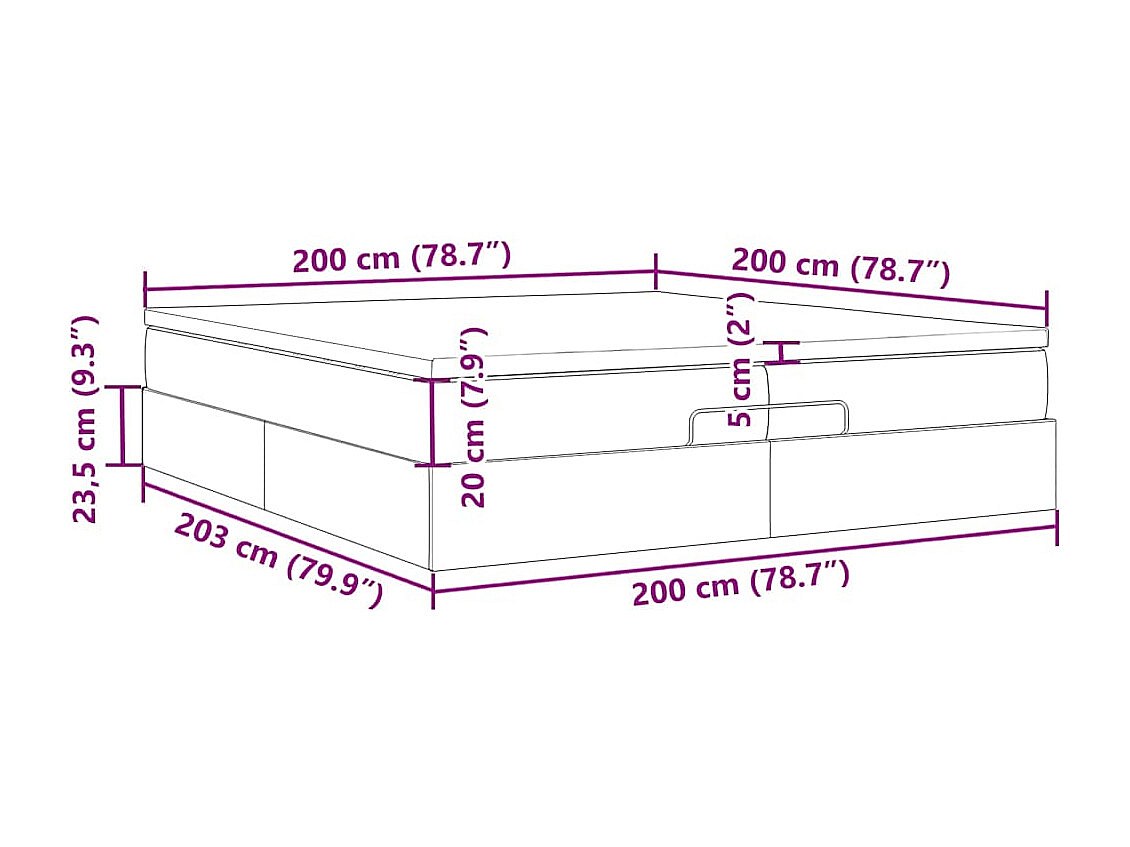 • Dimensiones totales: 203 x 200 x 23,5 cm (largo x ancho x alto)