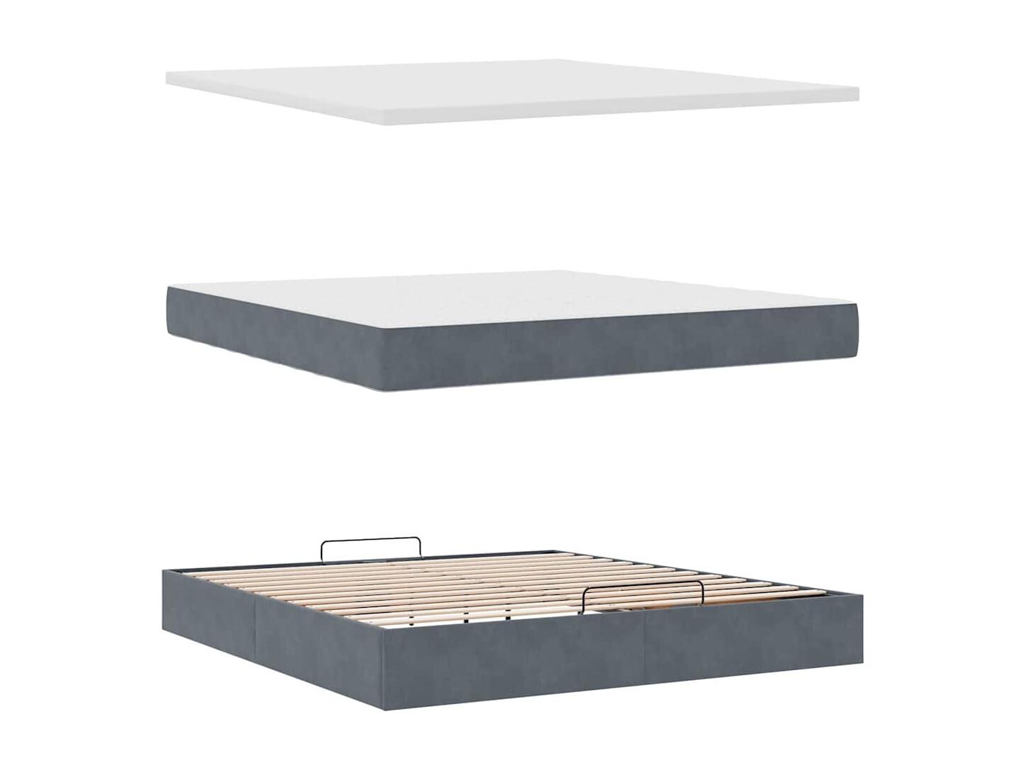 Estructura cama otomana colchones terciopelo gris oscuro