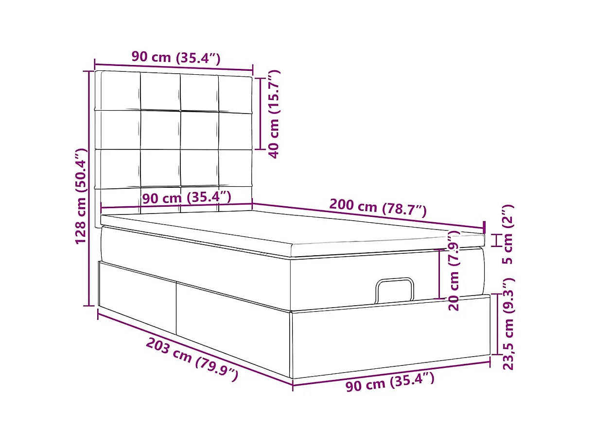 Estructura cama otomana colchones terciopelo negro 90x200 cm