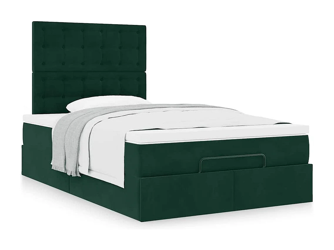 Estructura cama otomana colchón terciopelo verde oscuro
