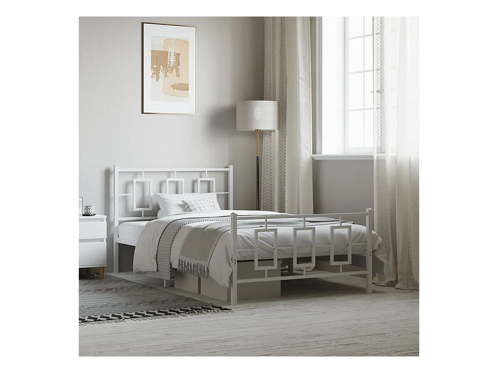 Estructura cama sin colchón con cabecero metal blanco 107x203cm
