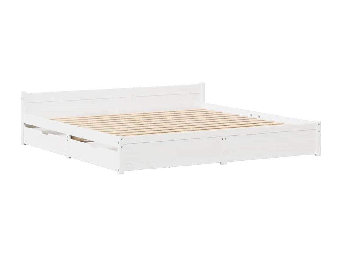 Clicnbuy le ofrece : Consigue un sueño más reparador con esta estructura de cama. Es un aporte acogedor para cualquier dormitorio. Estructura estable y duradera: La madera de pino maciza es conocida por su resistencia y durabilidad. Sus vetas rectas y sus característicos nudos contribuyen a su encanto rústico.Somier de láminas para un soporte óptimo: La estructura de cama está equipada con un somier de láminas para el apoyo y la transpirabilidad del colchón.Cabecero versátil: Esta estructura de cama viene con un cabecero que proporciona un excelente soporte para la espalda cuando te sientas en la cama para leer o ver la televisión, a la vez que sirve como elemento decorativo.Aproveche al máximo el espacio: Este somier cuenta con dos cajones debajo, que proporcionan almacenamiento para artículos como ropa de cama extra, ropa de temporada y juguetes.Maniobrabilidad sin esfuerzo: Este cajón de almacenamiento bajo la cama cuenta con cuatro ruedas, que proporcionan una maniobrabilidad suave y sin esfuerzo para deslizarse dentro y fuera de debajo de tu cama. Información útil:El colchón no está incluido con la cama. Disponemos de una variada selección de colchones. Puedes echar un vistazo a nuestra tienda para buscar el colchón correspondiente.