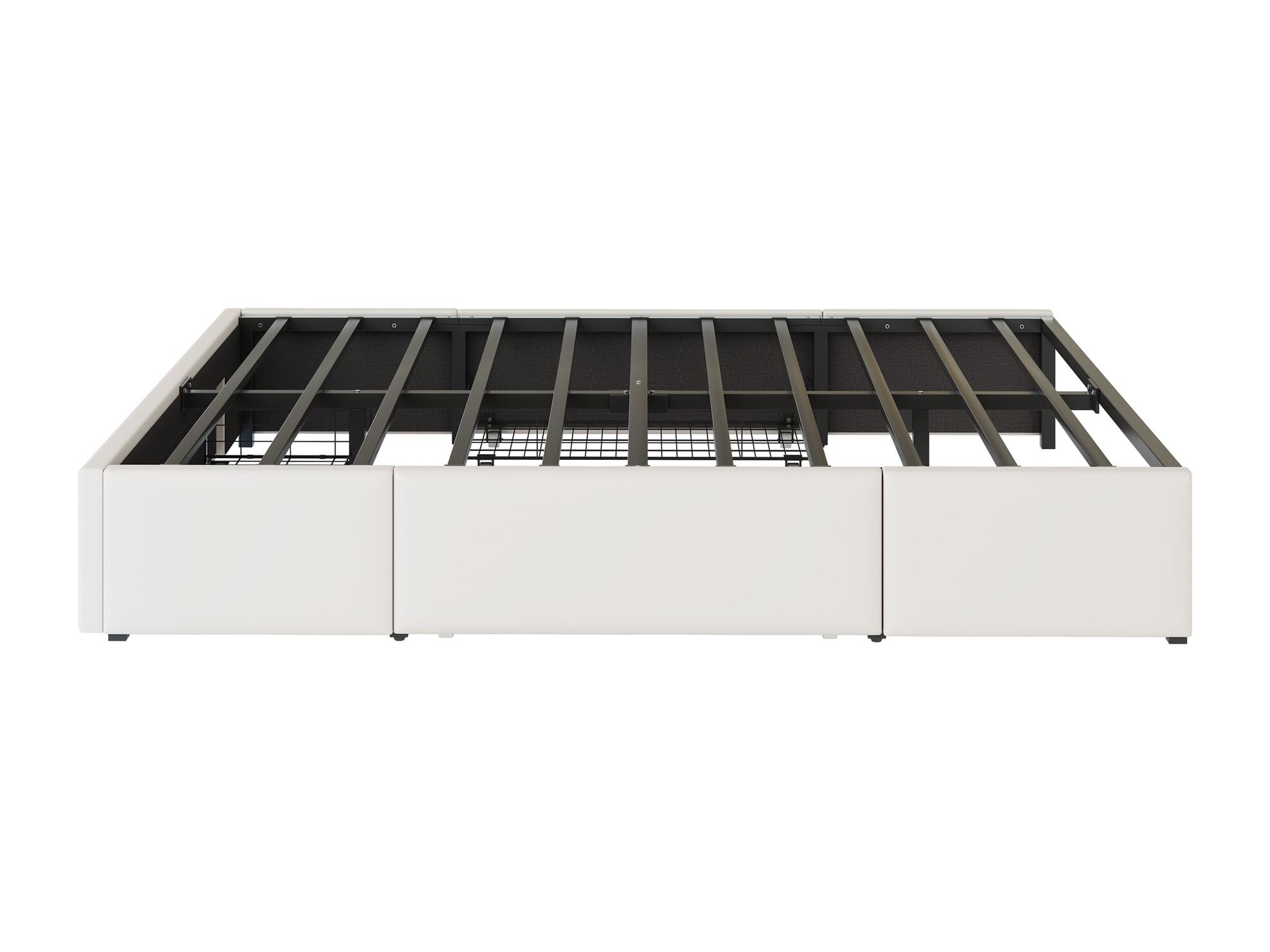 Estructura de cama 140 x 200 cm con cajones, LED, sin cabecero, tejido PU, láminas de metal, Beige