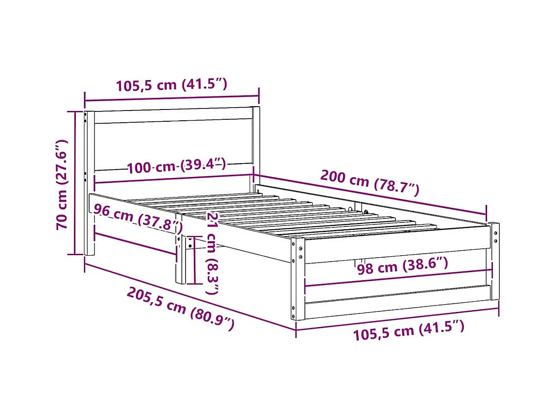 Estructura de cama Blanco 100 x 200 cm Madera maciza de Pino