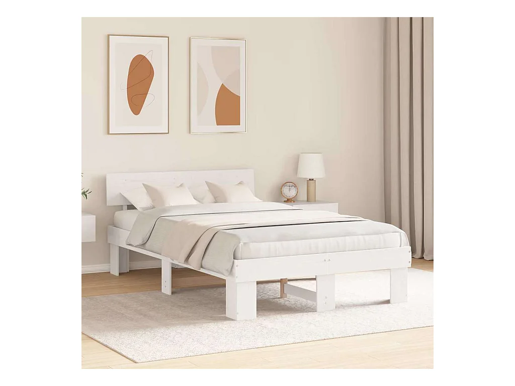 Estructura de cama madera maciza blanca 120x200 cm