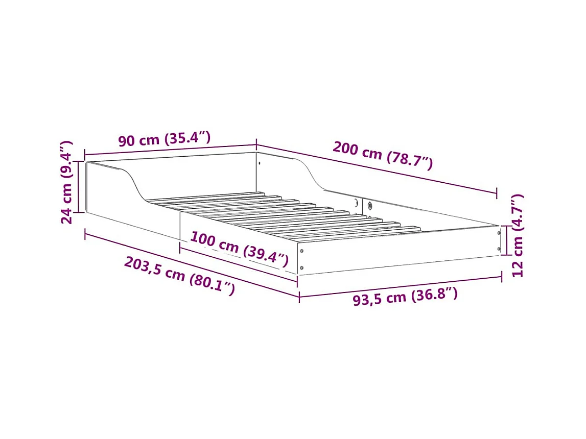 Estructura de cama 90 x 200 cm Madera maciza de pino