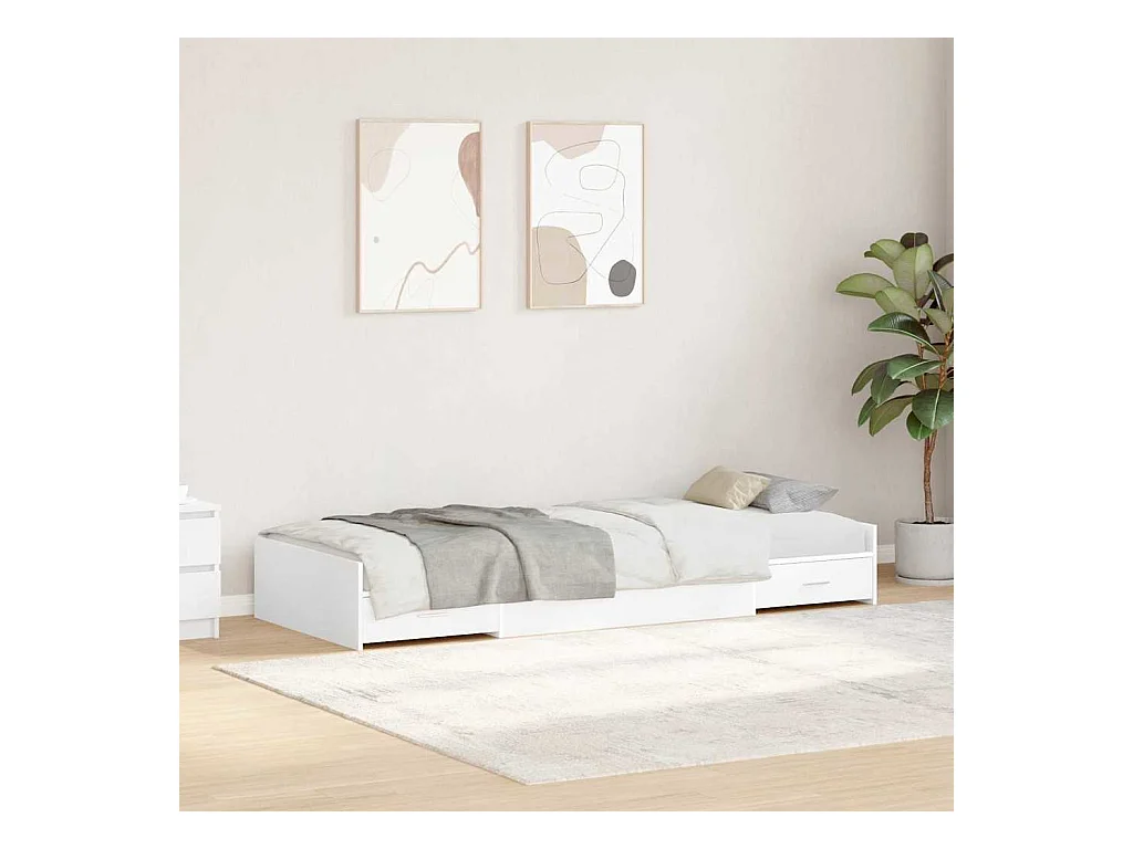 Cama de día con cajones sin colchón blanco 75x190 cm