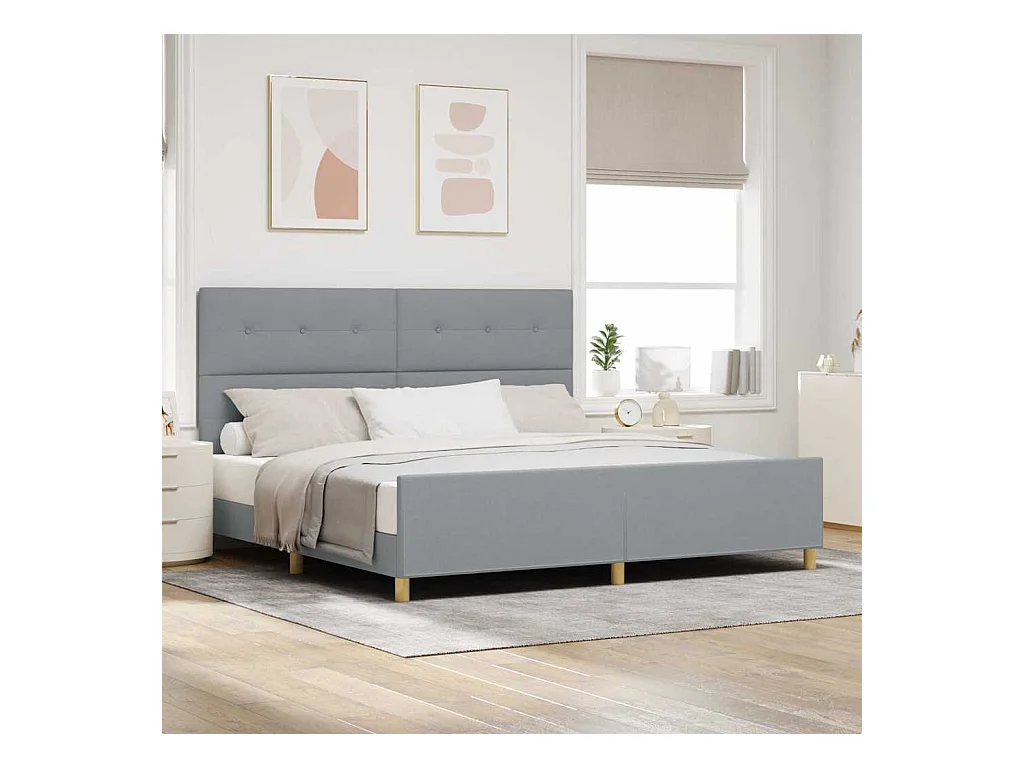 Estructura de cama con cabecera Gris claro 200 x 200 cm tela