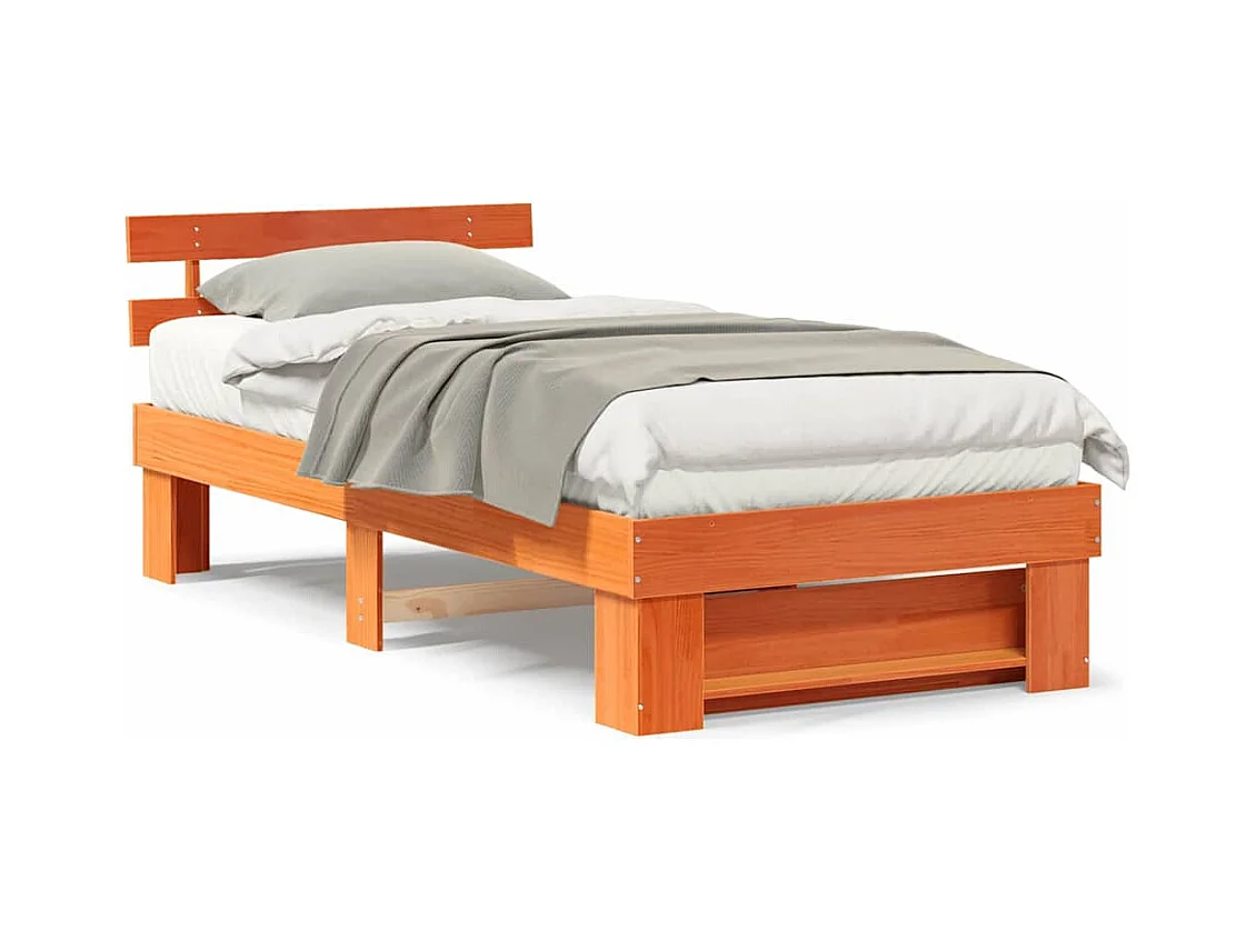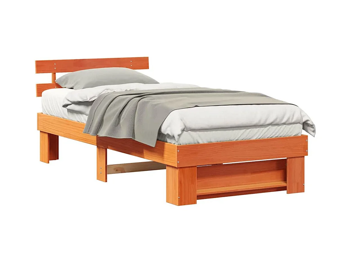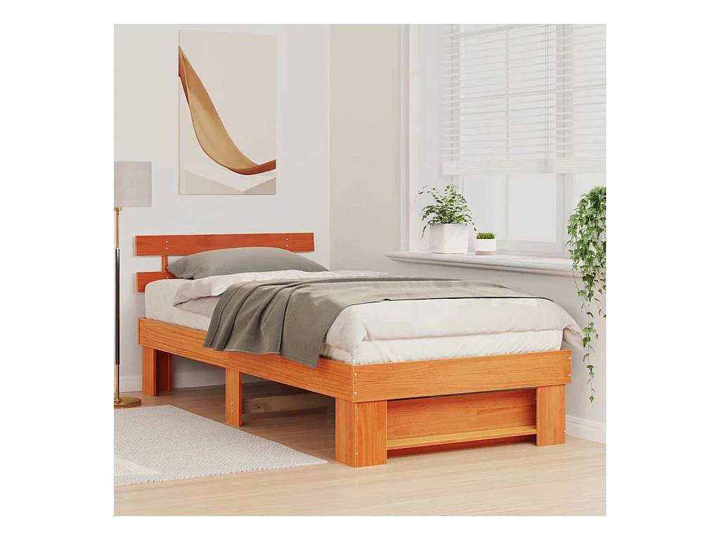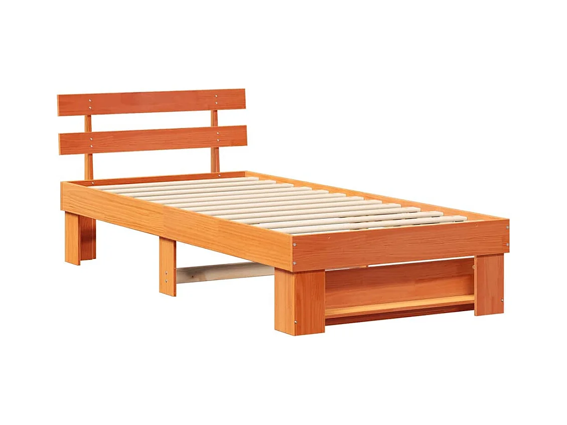 Cama sin colchón madera maciza de pino marrón cera 100x200 cm