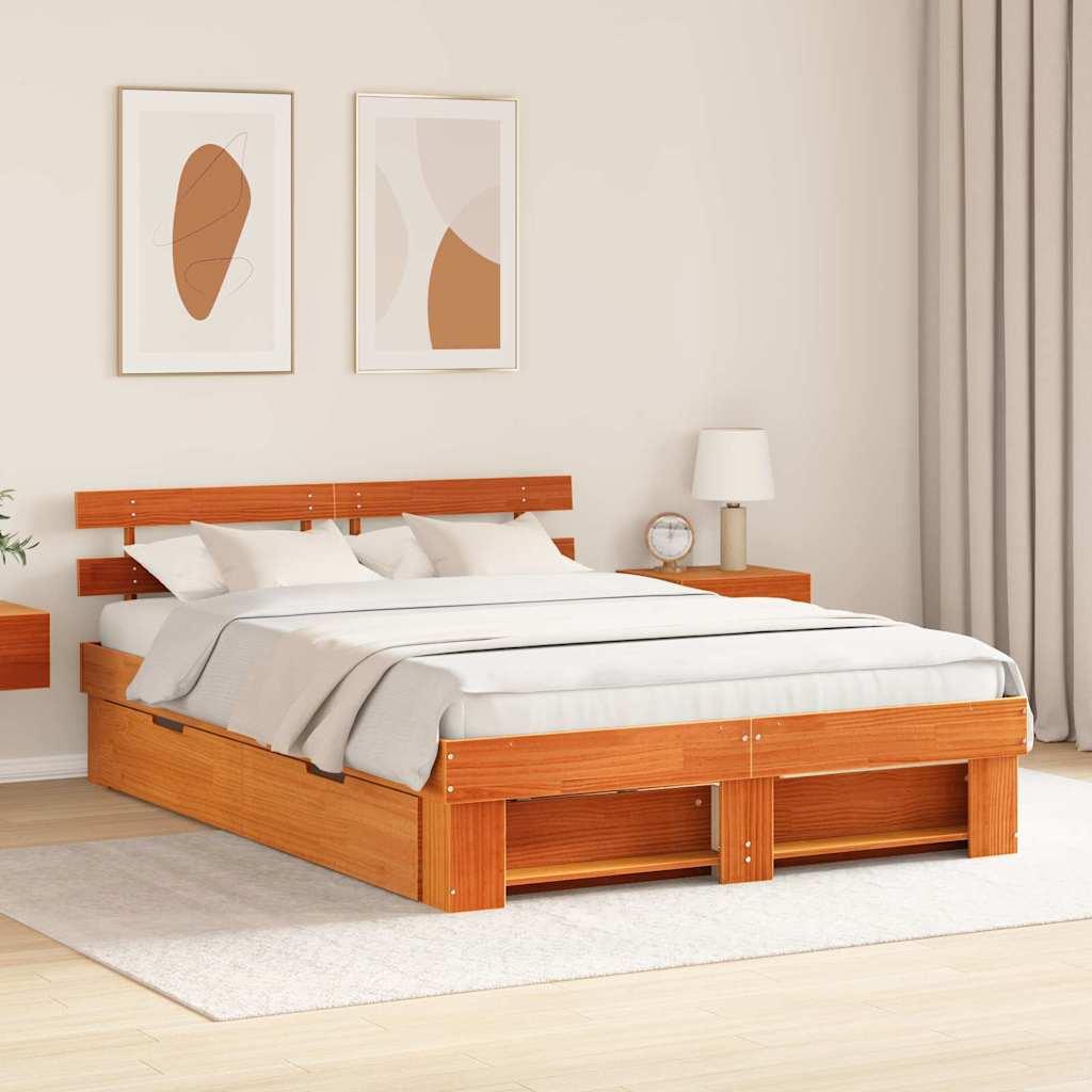 Cama con estantería sin colchón madera maciza marrón 160x200 cm