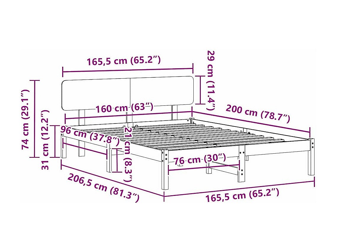 Estructura de cama con cabecero madera maciza 160x200 cm
