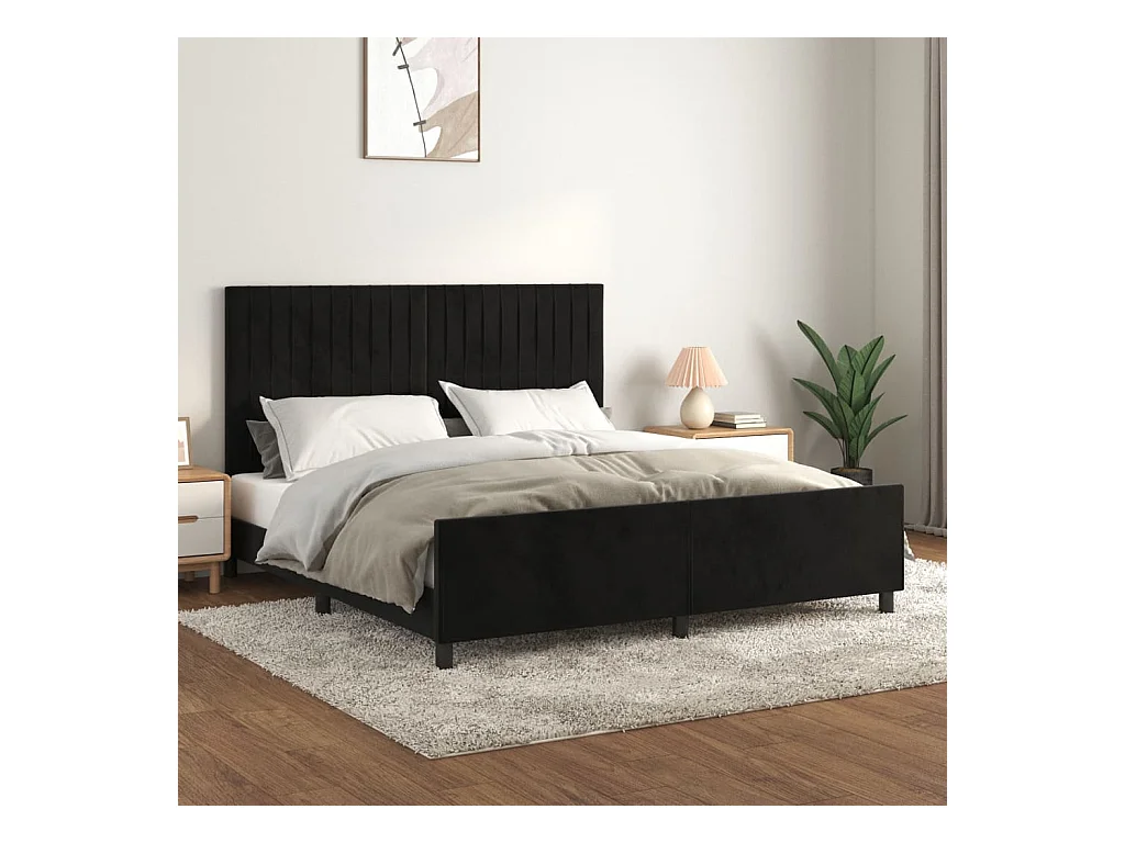 Estructura de cama con cabecero de terciopelo negro 160x200 cm