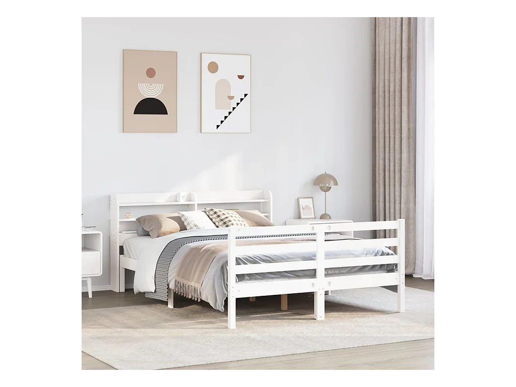 Estructura de cama con cabecero madera de pino blanco 150x200cm