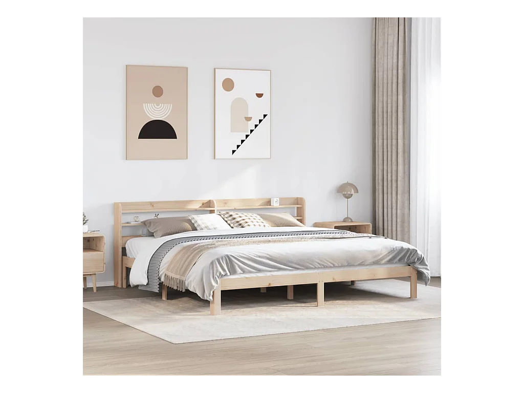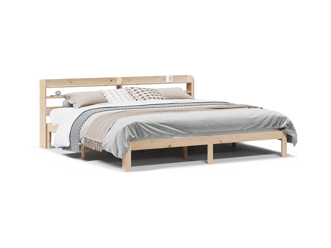 Estructura de cama con cabecero madera maciza de pino 200x200cm