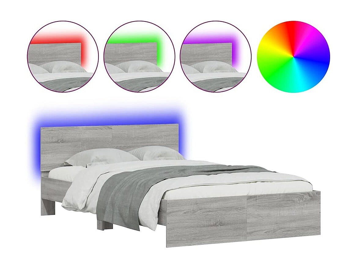 Estructura de cama con cabecero y LED Sonoma Gris 135x190 cm