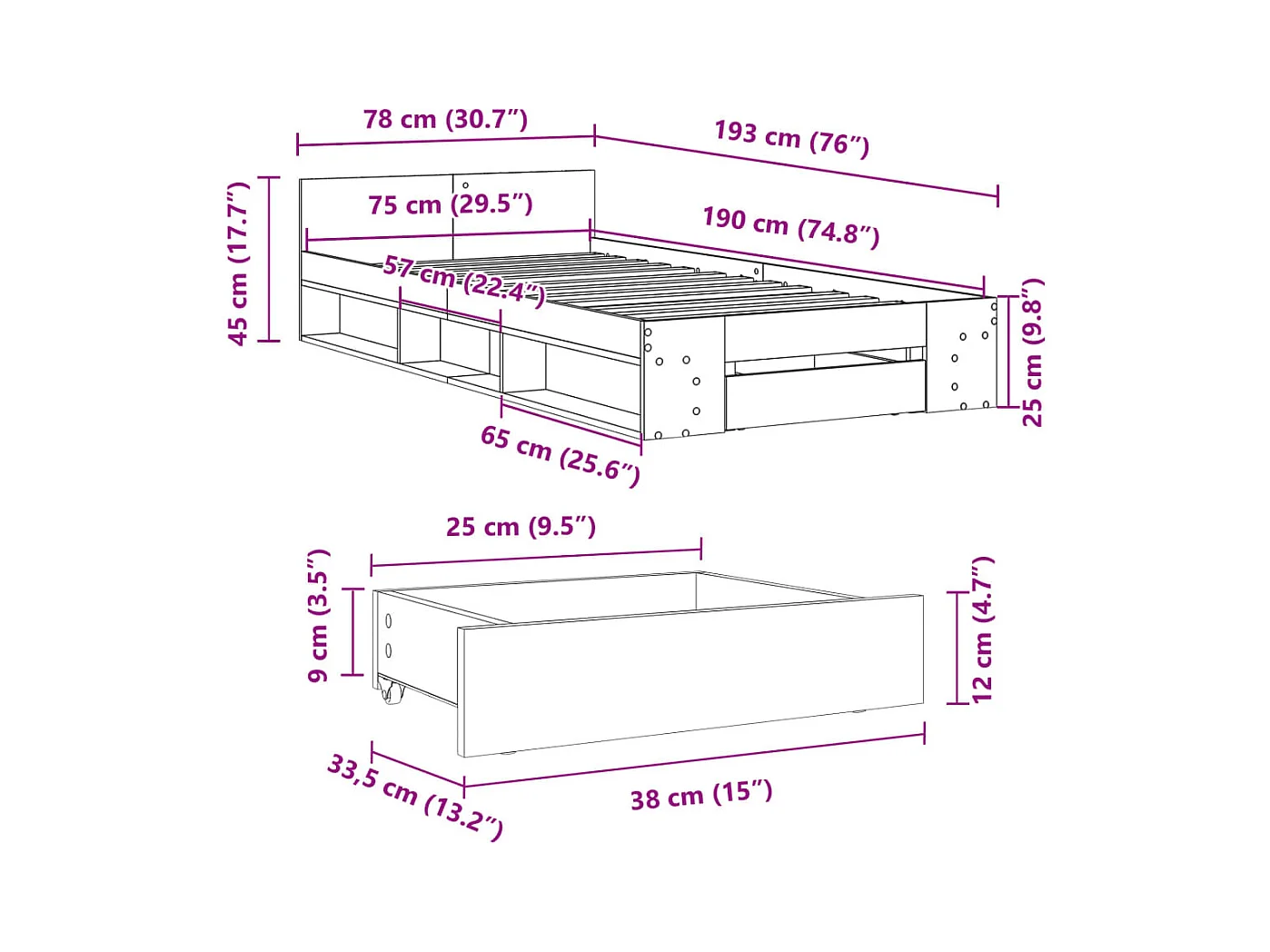 Estructura de cama con almacenaje Blanco 75 x 190 cm Madera de ingeniería