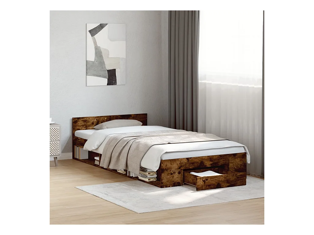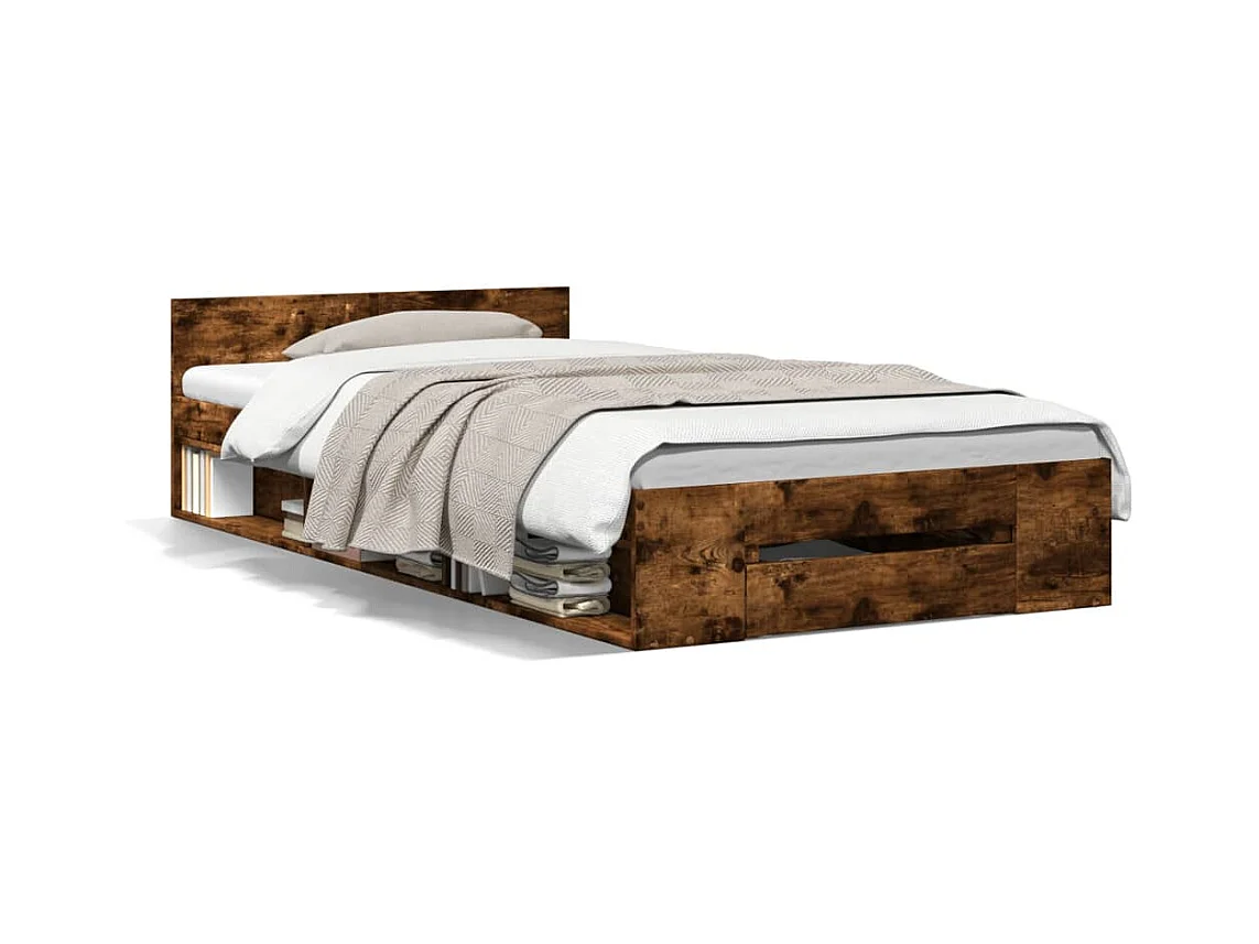 Estructura de cama con cajón sin colchón roble ahumado 90x190 cm