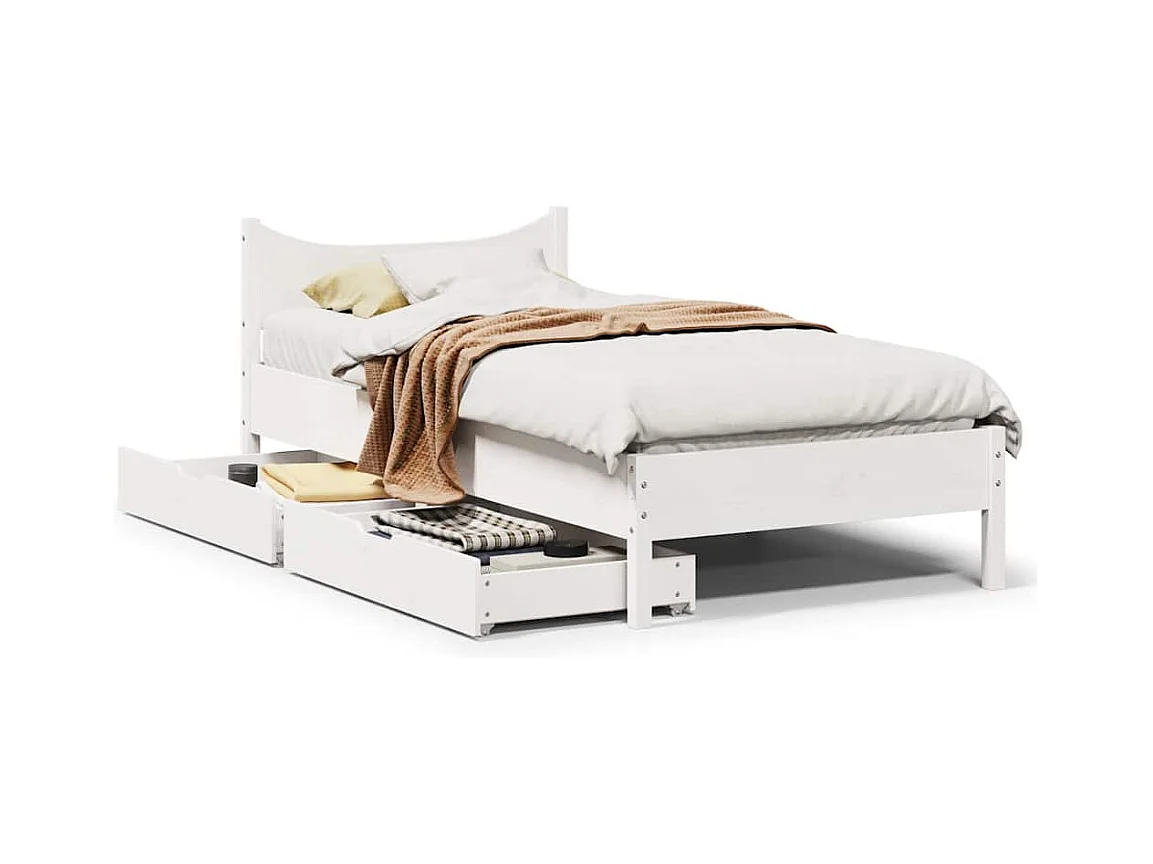 Estructura de cama con cajones blanca 75x190 cm madera maciza de pino