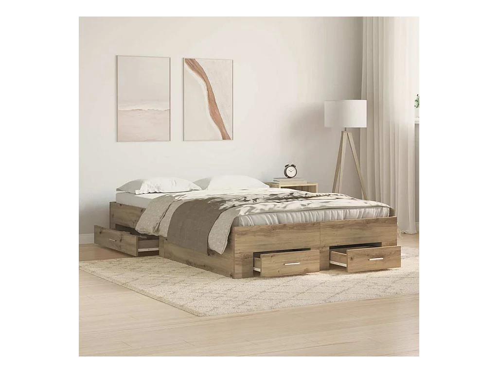 Estructura de cama con cajones, roble artesanal, 120 x 200 cm