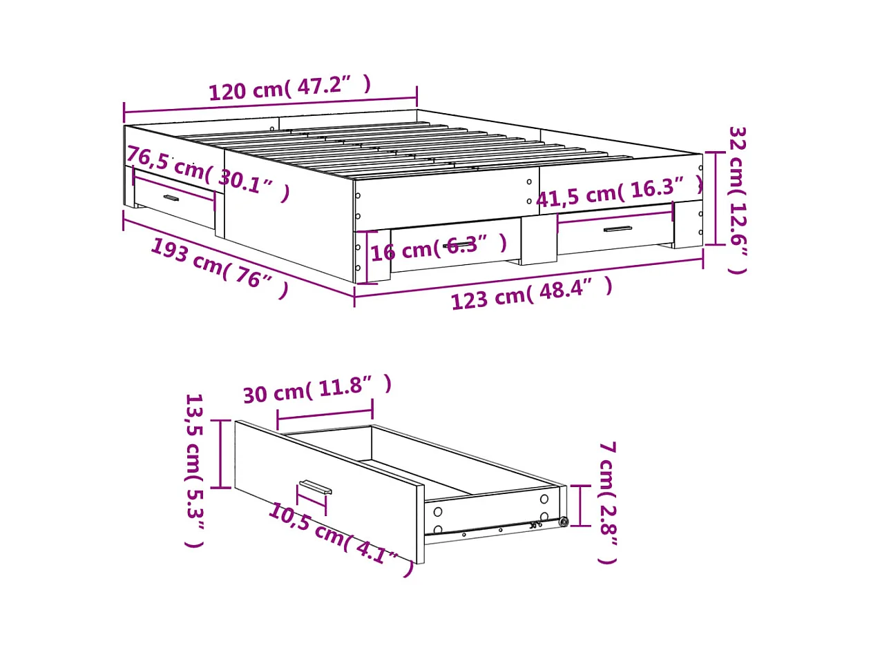 Estructura de cama con cajones sin colchón Sonoma gris 120x190 cm