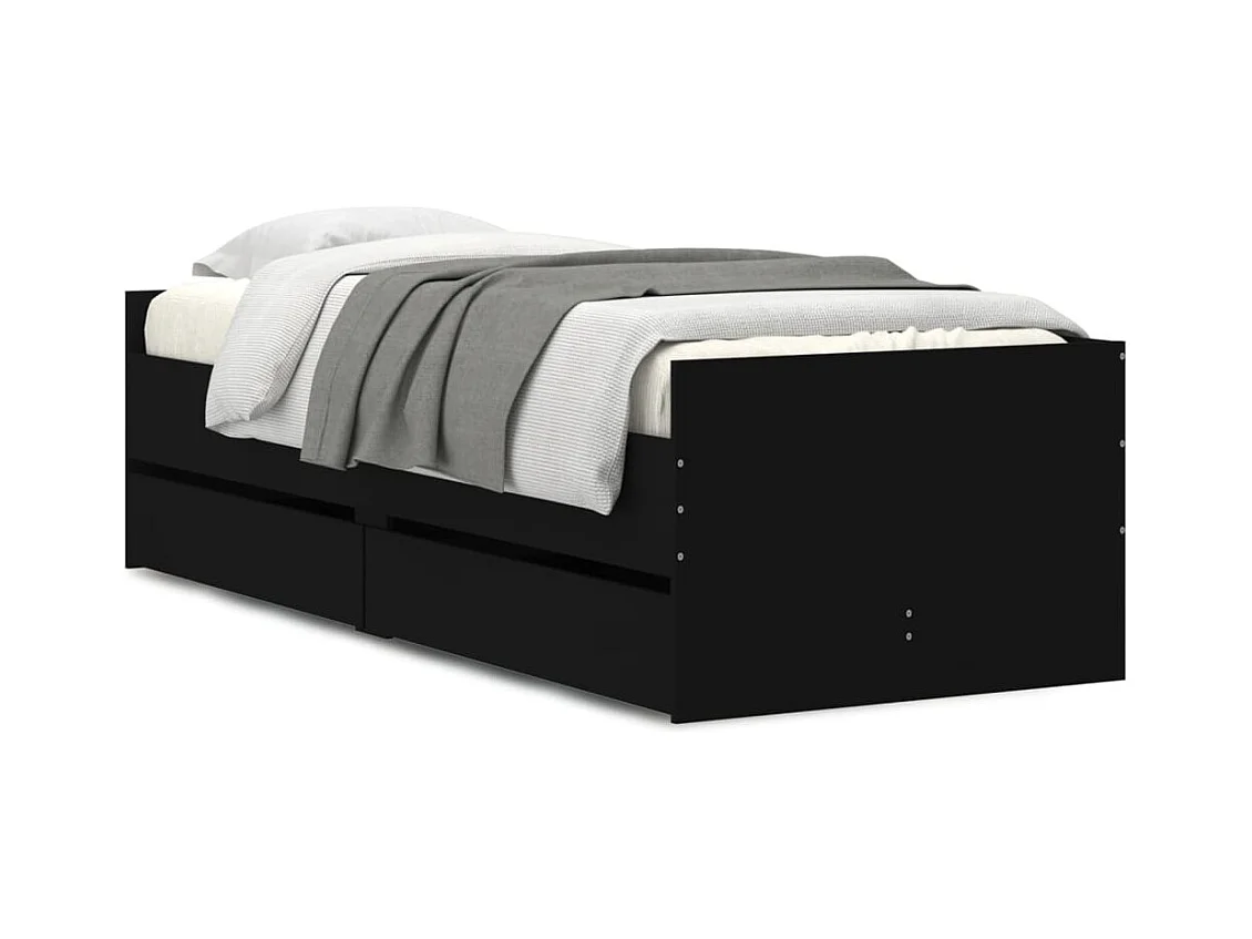 Estructura de cama con cajones sin colchón negra 100x200 cm