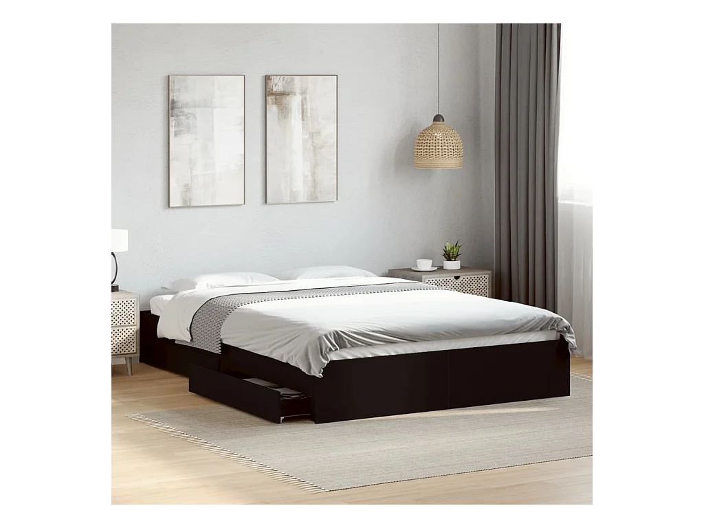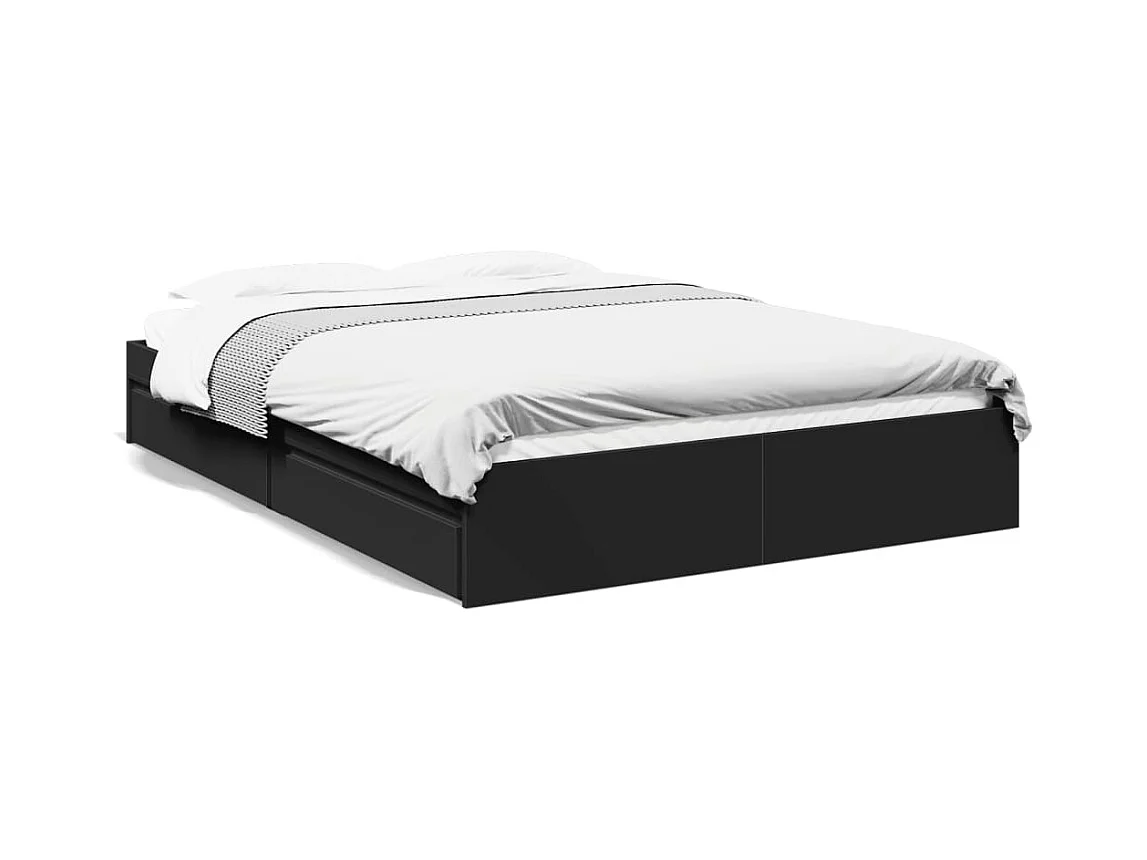 Cama matrimonial- 150x200 cm madera de ingeniería negra ES840609