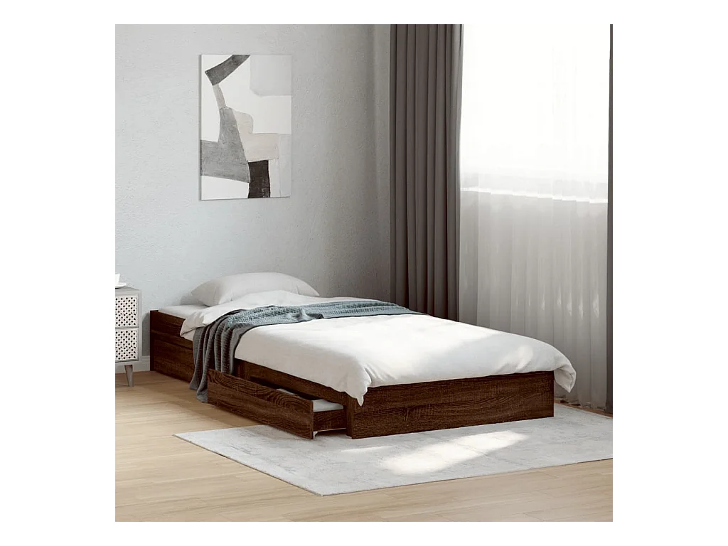 Estructura de cama con cajones sin colchón roble marrón 100x200 cm
