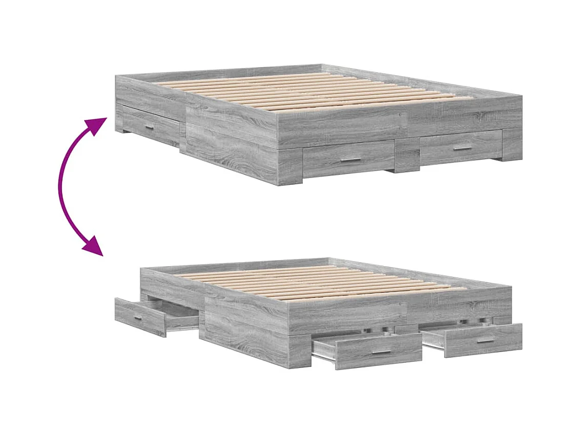 Estructura de cama con cajones sin colchón sonoma gris 120x200 cm