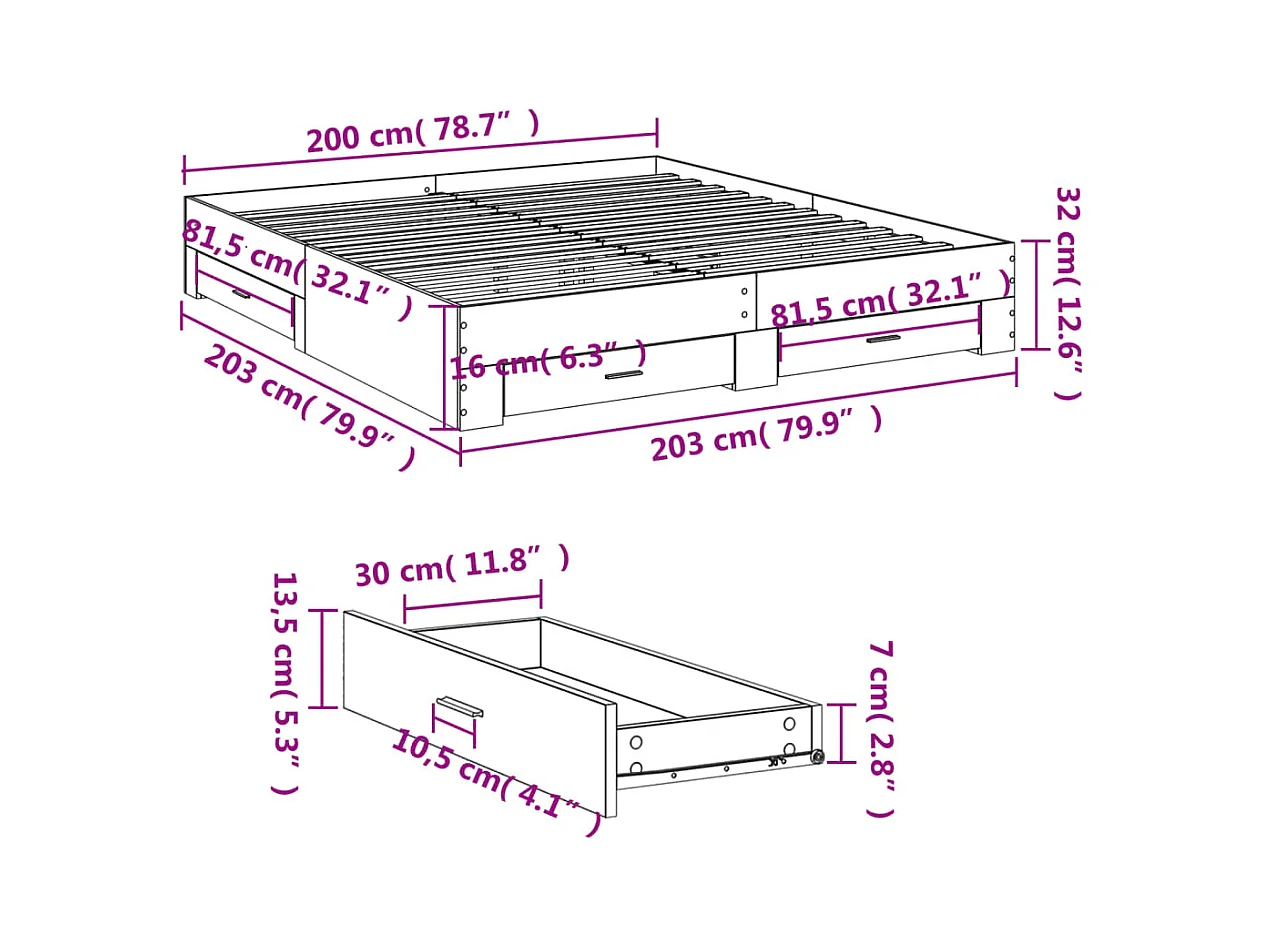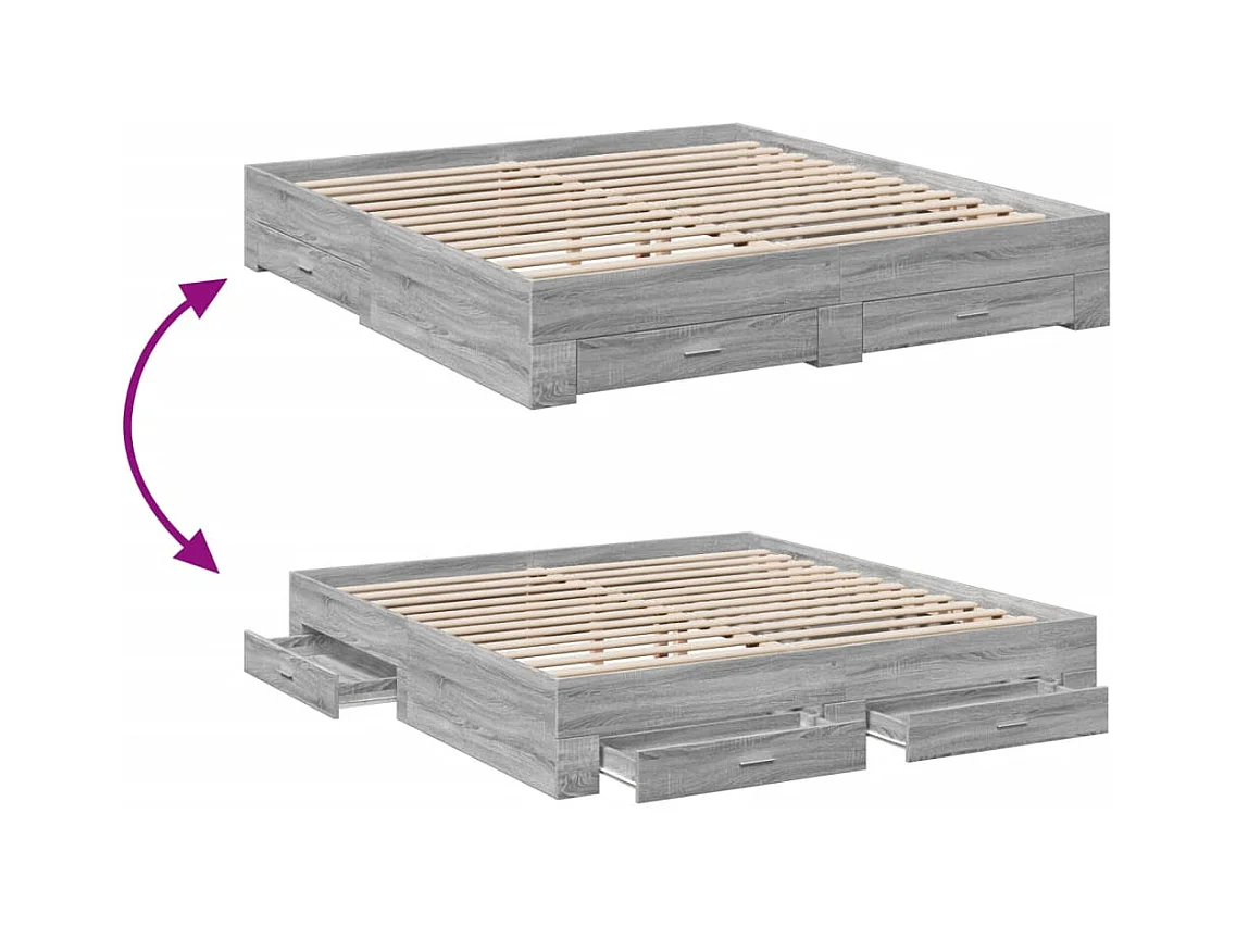 Estructura de cama con cajones sin colchón Sonoma gris 200x200 cm