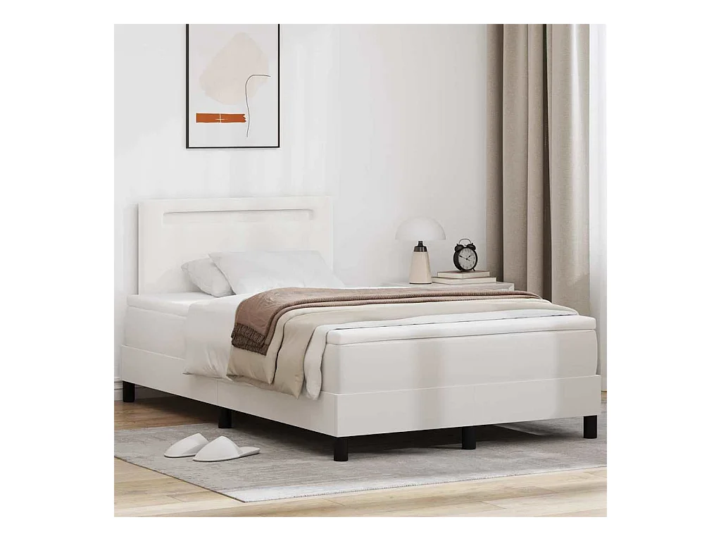Estructura cama con LED cuero sintético blanco negro 120x200 cm
