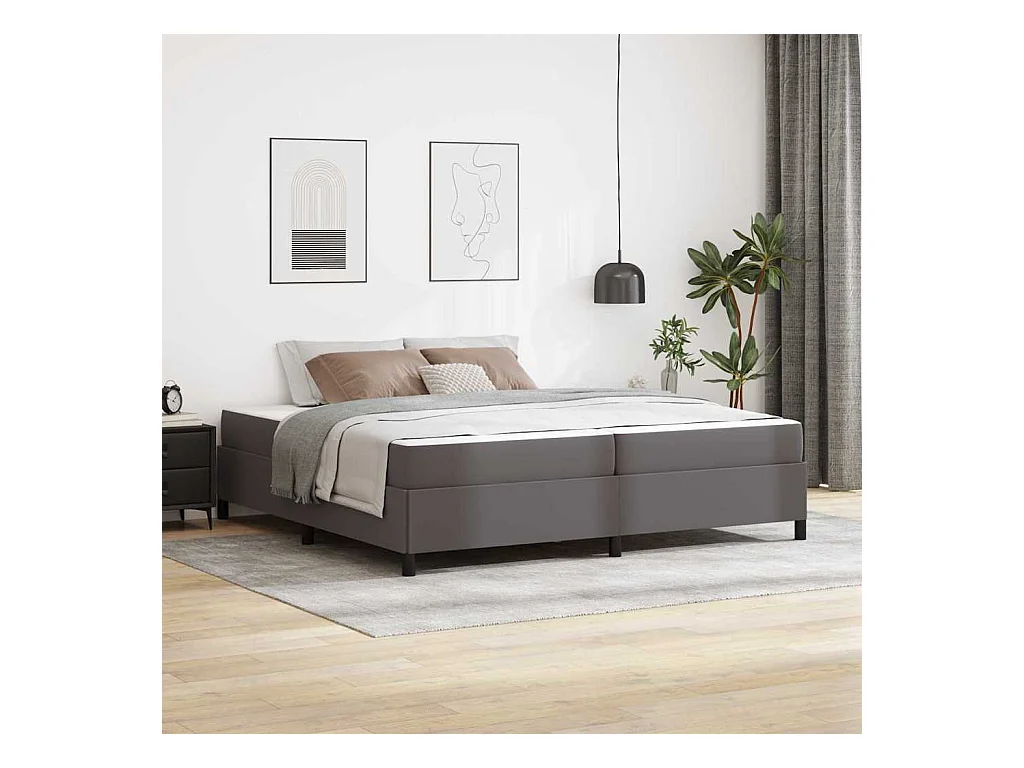 Cama con colchón Gris 200 x 200 cm Cuero sintético
