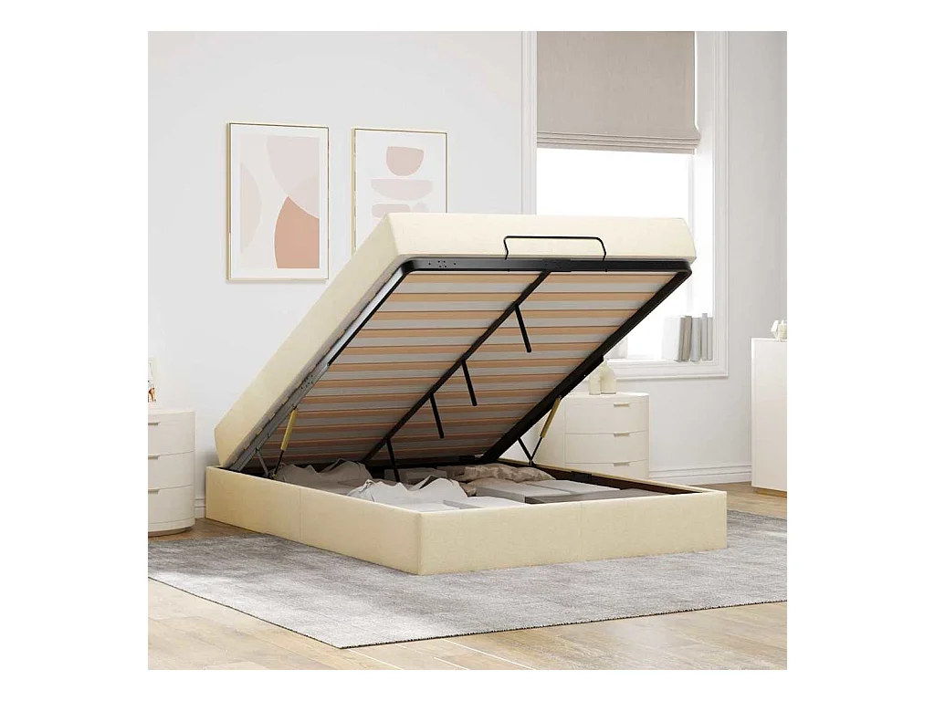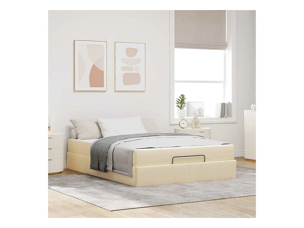 Estructura de cama con colchón Crema 140 x 190 cm tela