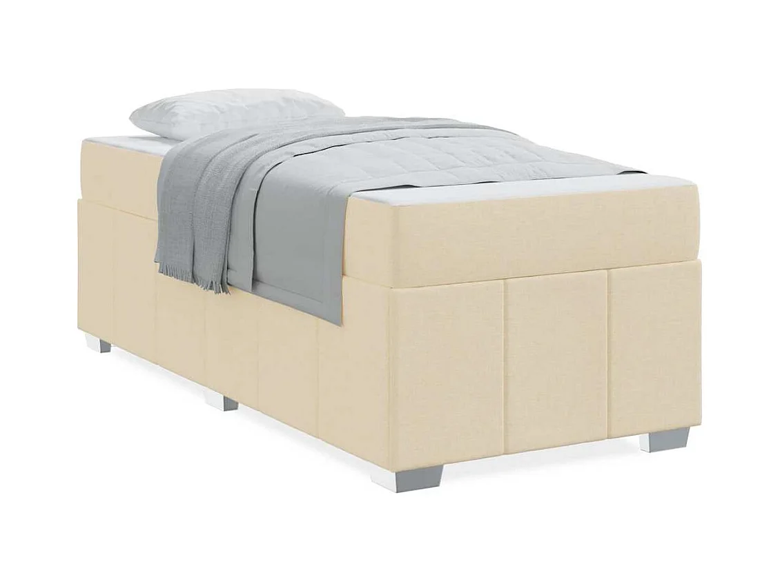 Estructura de cama con colchón de tela color crema 90 x 200 cm