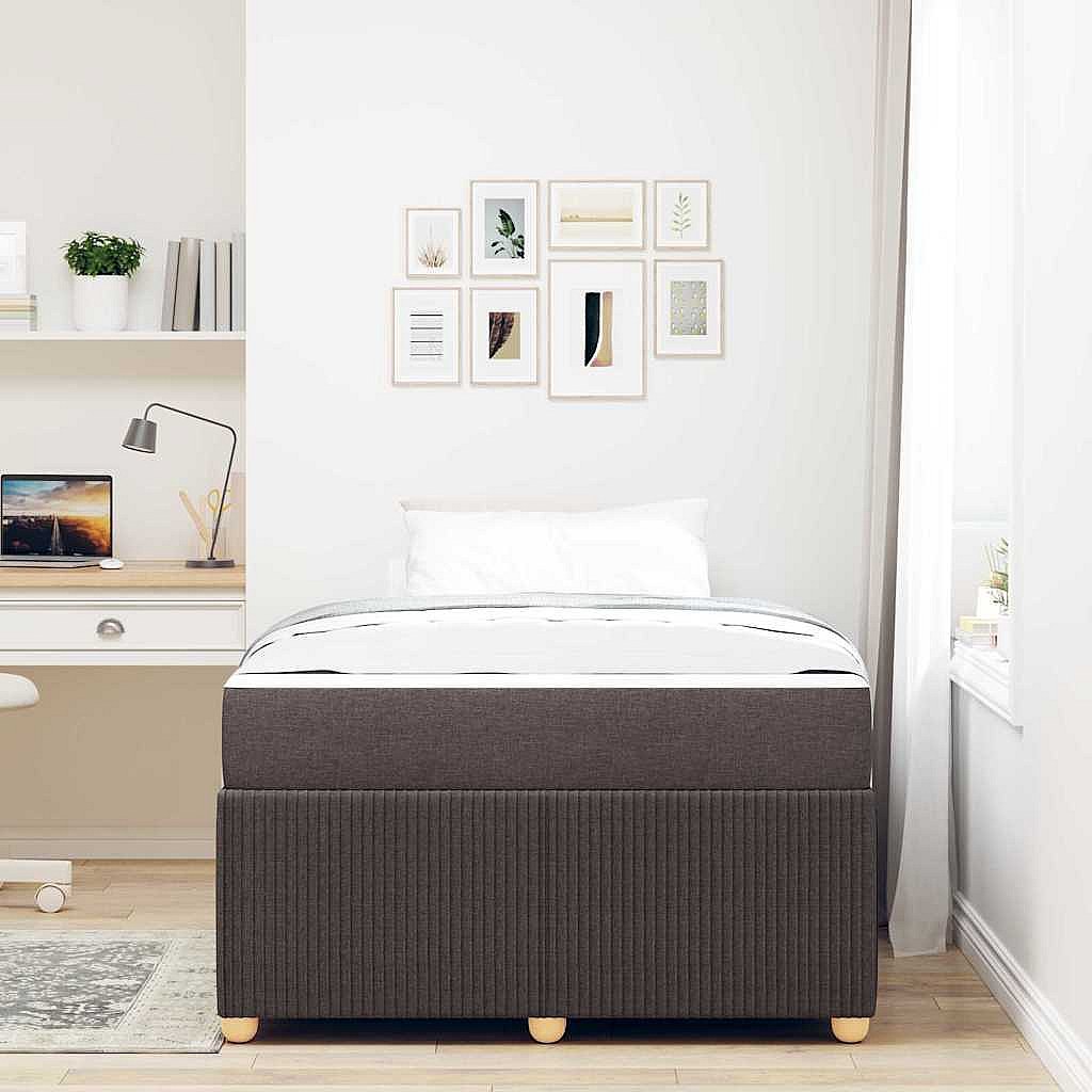 Estructura de cama con colchón Marrón oscuro 120 x 190 cm tela