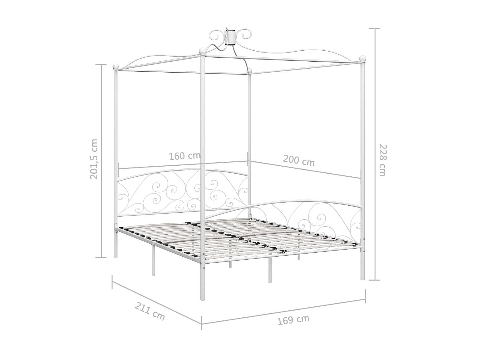 Estructura de cama con dosel blanco de metal de 160 x 200 cm