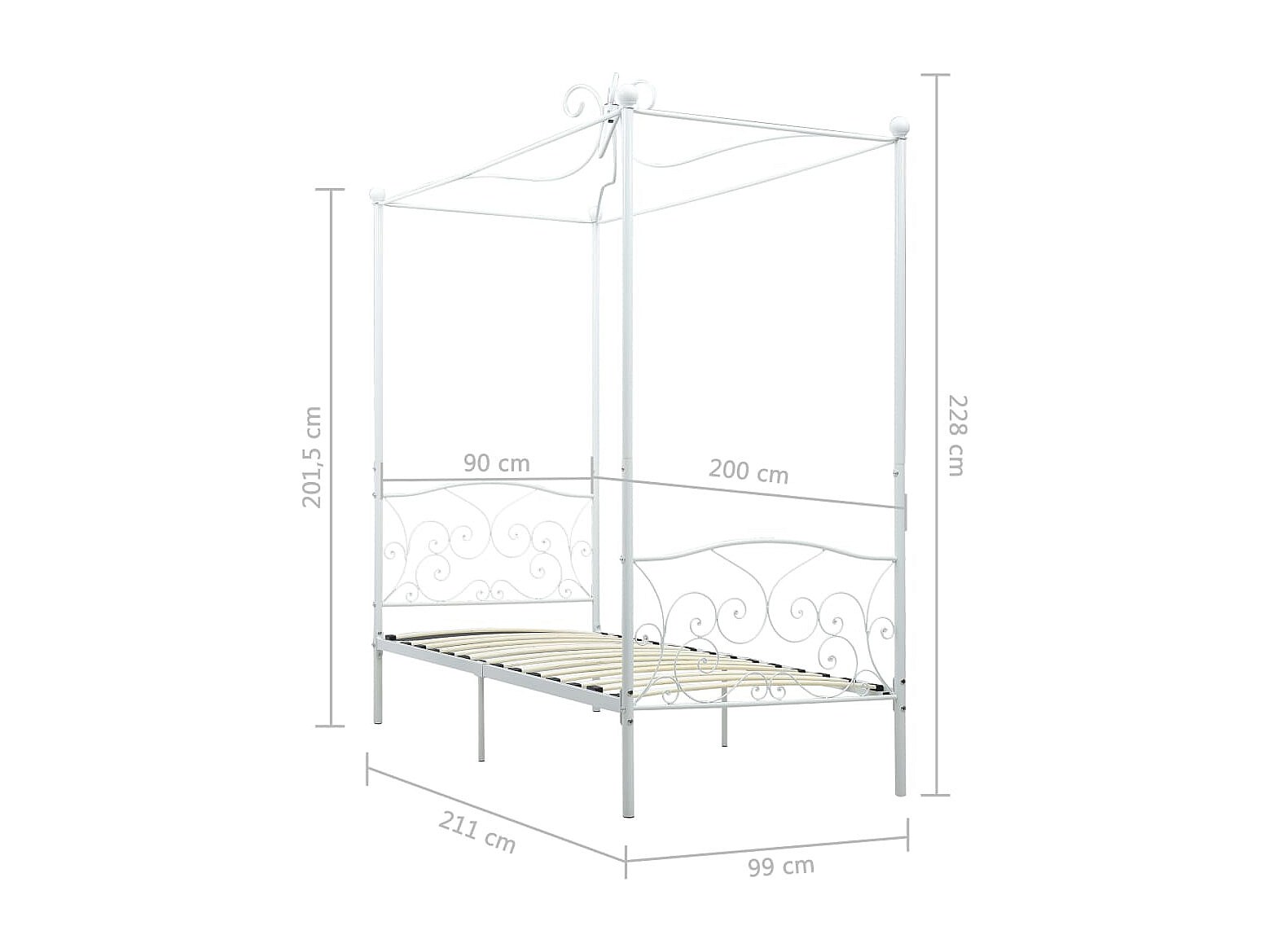 Estructura de cama con dosel sin colchón de metal blanco 90x200 cm