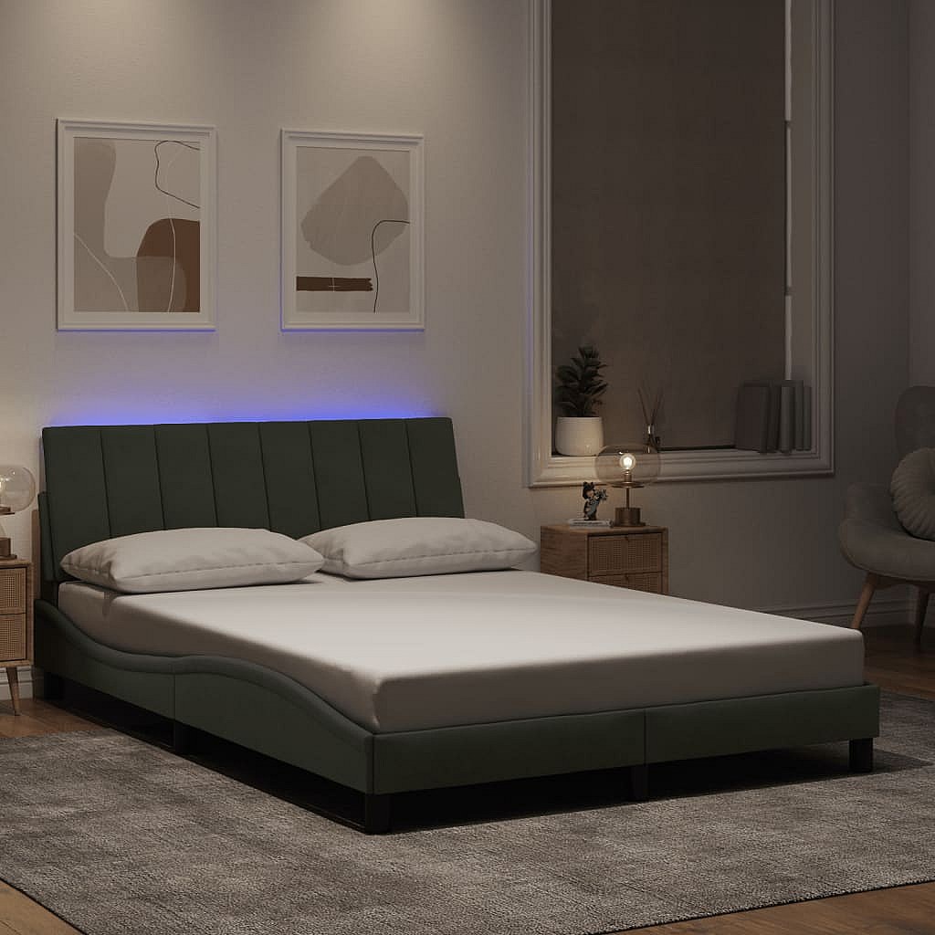 Estructura de cama con LED sin colchón tela gris oscuro 140x200 cm