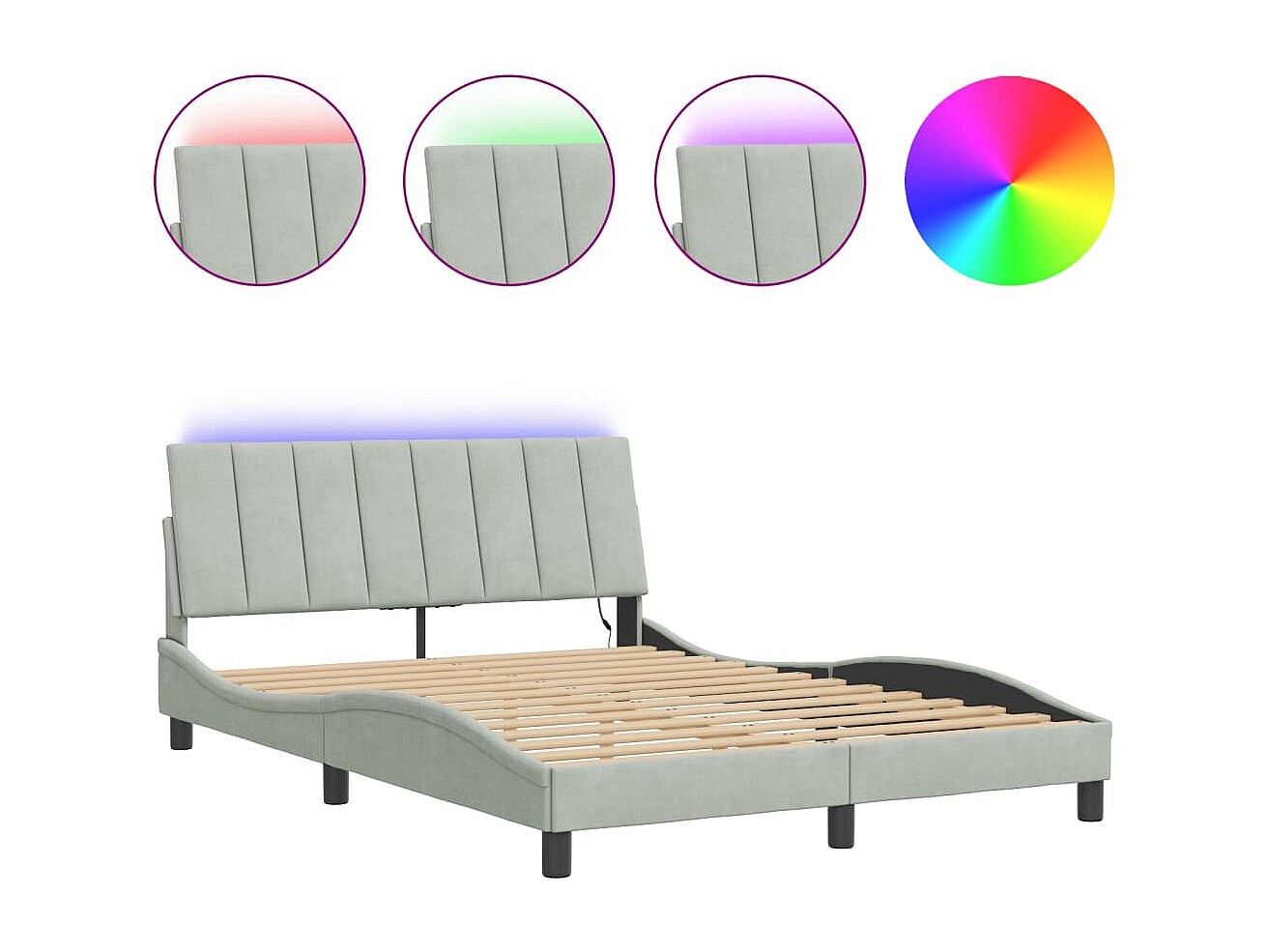 Estructura de cama con LED sin colchón gris claro 140x200cm terciopelo