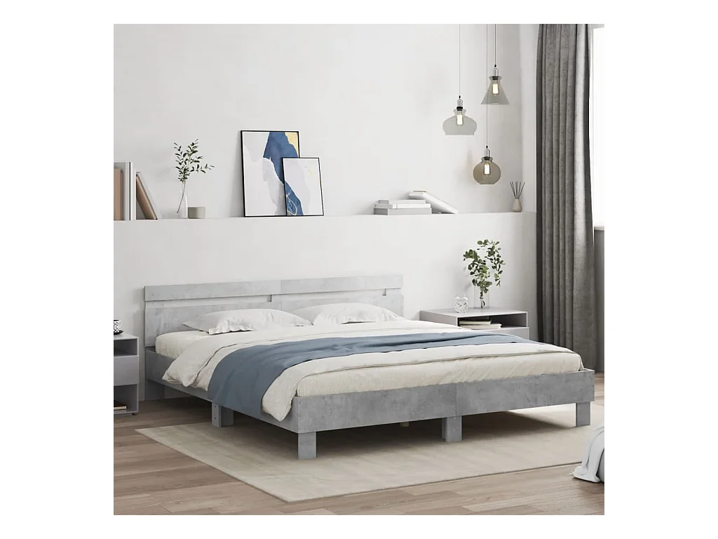 Estructura de cama con LED sin colchón gris hormigón 200x200 cm