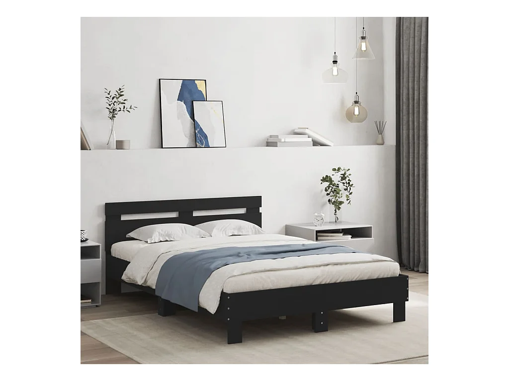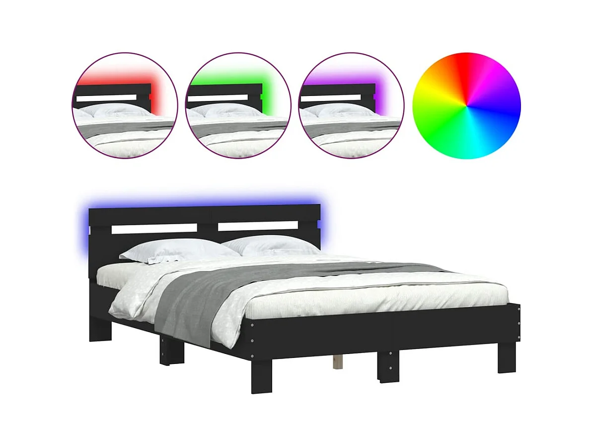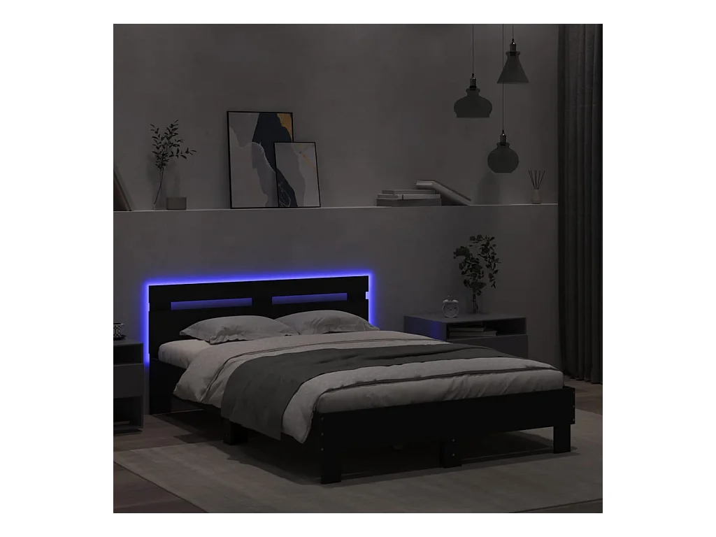 Estructura de cama con LED sin colchón negra 120x190 cm