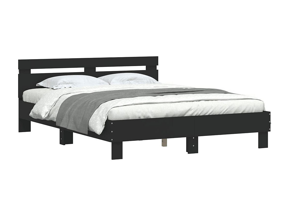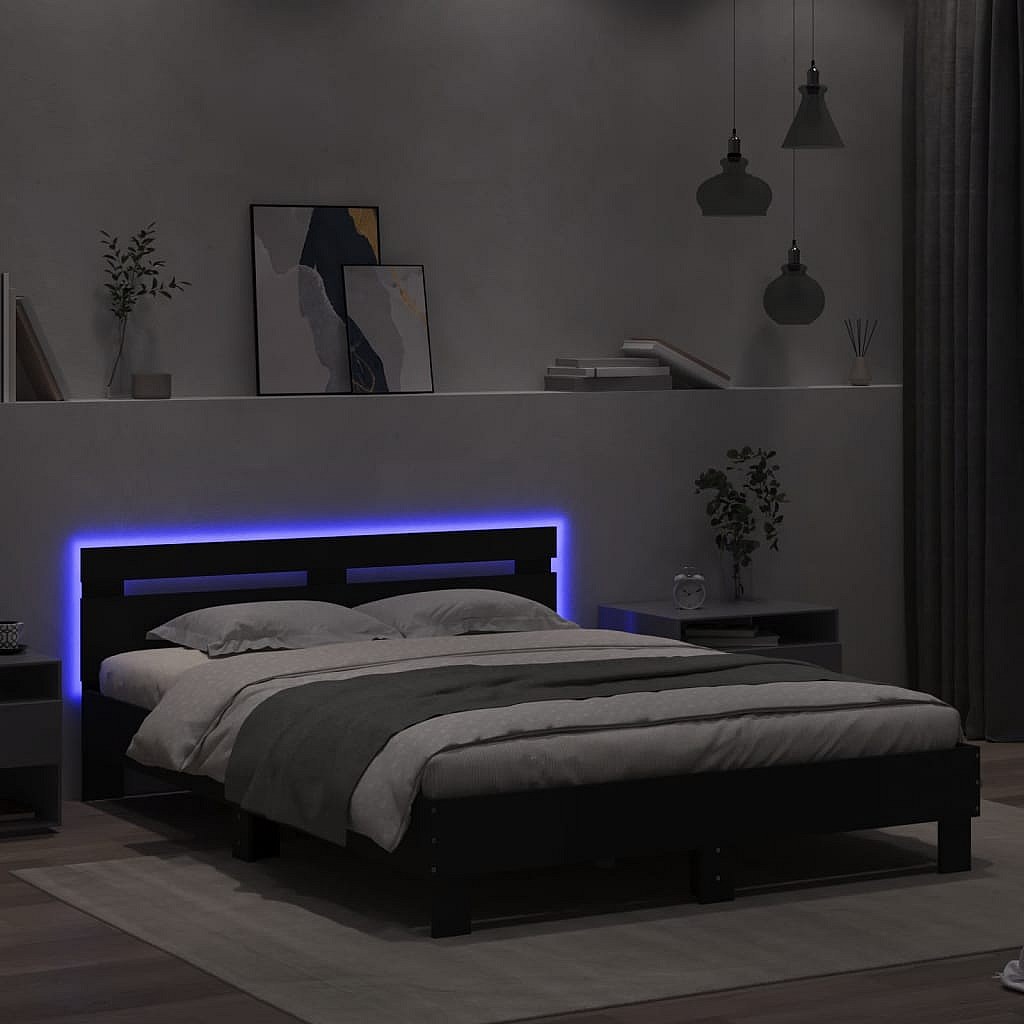 Estructura de cama con LED sin colchón negra 140x190 cm