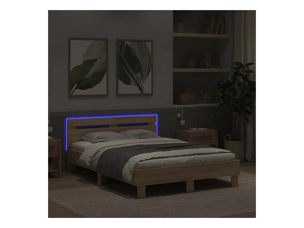 Estructura de cama con LED sin colchón roble Sonoma 120x200 cm