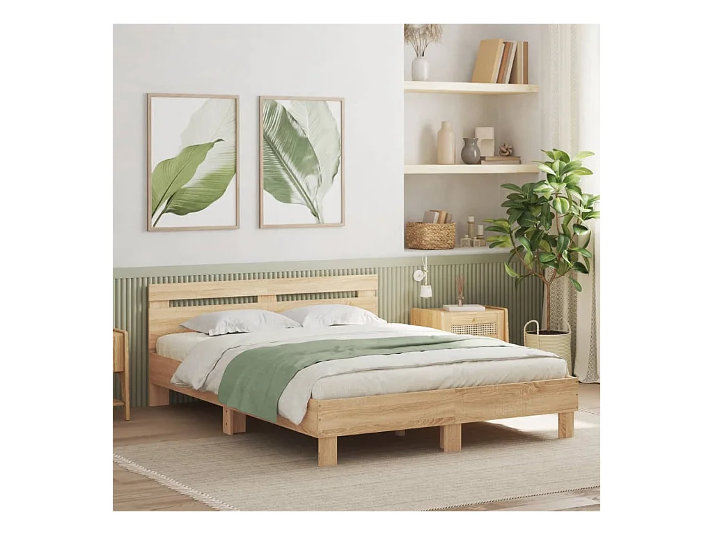 Estructura de cama con cabecero y LED roble Sonoma 140x190 cm